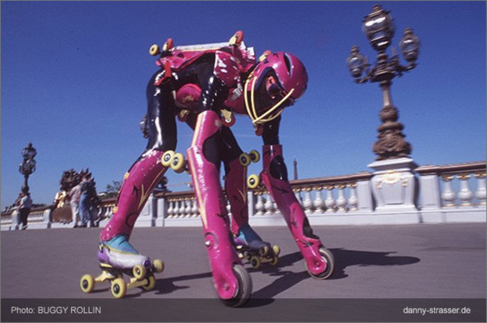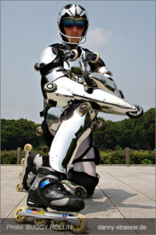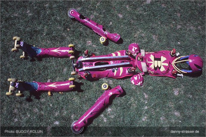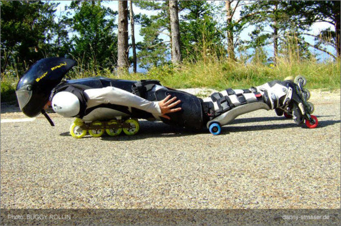 Inzwischen hat Jean Yves 18 verschiedene Buggy Rollin Anzüge gebaut, davon vier für Frauen. |