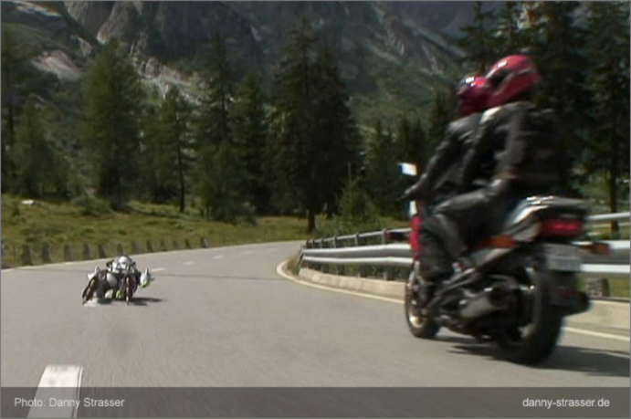 Selbst Motorräder sind vor dem Rollermann nicht sicher |